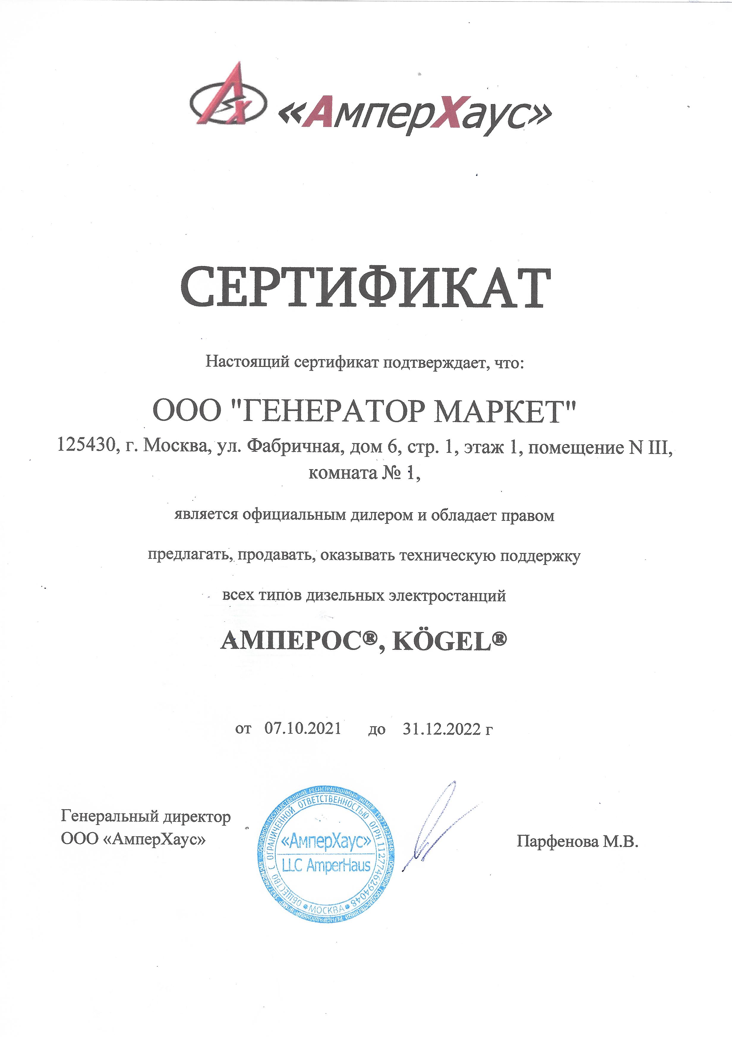 Свидетельство о государственной регистрации юридического лица и Сертификаты полномочий ведущих дистрибьюторов генераторных установок на территории Российской Федерации - гарантии надежности и профессионализма команды "Генератор Маркет".